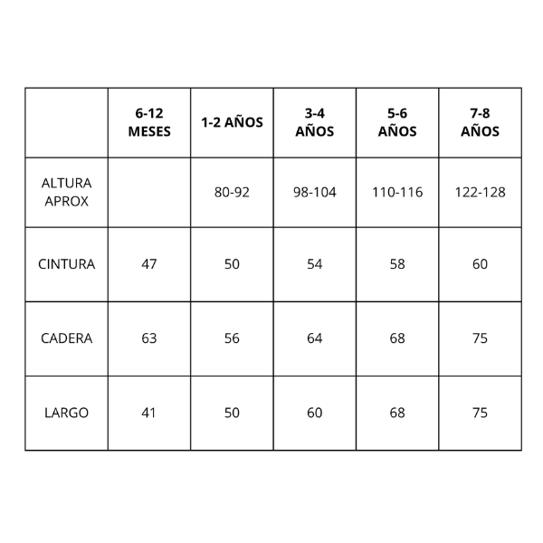 Tambien realizamos talles hasta 11-12 años a medida (Solicitar por Whatsapp)